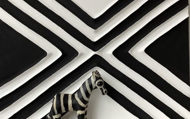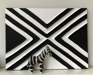 Ce jour-là bousculant le dessus de la cheminée, le miroir a glissé tête-bêche entraînant la lampe, la photo de ma sœur et moi, – l’une a huit ans et l’autre six -, le zèbre (inturege) réalisé par les potiers twa du Rwanda, une girafe en bois du musée de Butare. Je ne sais plus où je suis, j’essaye de sauver les plus précieux de mes souvenirs : je retiens le zèbre avec ma cheville, tremblant de tout mon corps. J’ai tellement peur, mes mains ne m’obéissent plus. Il n’est pas cassé. Il est là sur ses pattes, toujours pareil, noir et blanc comme les tableaux Imigongo. Je le serre sur mon cœur. Les tremblements se poursuivent, je suis tétanisée et sauvée. Ma mémoire est sauve.